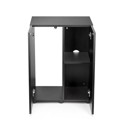 Szafka akwariowa Opti Set w kolorze szarym łączy w sobie funkcjonalność ze starannym wykończeniem. Zlicowane drzwi szafki z akwarium dodają elegancji i tworzą wrażenie jednolitej bryły. Dla osiągnięcia tego celu fronty szafki pozbawione są klasycznych uchwytów. Podkreśla to minimalistyczny charakter i powala dopasować mebel do każdego wnętrza. Jednocześnie otwieranie jest bardzo wygodne – wystarczy nacisnąć skrzydło drzwiczek, a uchylą się one na odpowiednią szerokość.