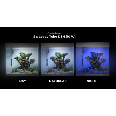 Natomiast gdyby twoja aranżacja tego wymagała, to świetlówki możesz wymienić na inne z szerokiej oferty Leddy Tube. Np. zastosuj Plant, jeśli masz akwarium roślinne albo Marine Day&Night, jeśli marzy ci się w tym zestawie akwarium morskie.