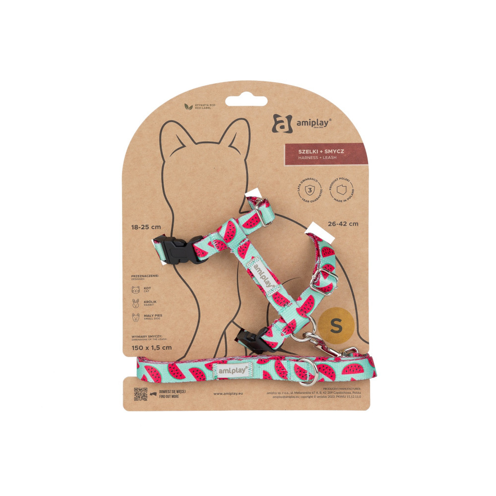 Amiplay BeHappy Cat Szelki i smycz dla kota M Watermelon