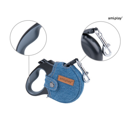 Amiplay Infini Smycz automatyczna z obudową Denim M 5 m – 15 kg niebieska dla psa