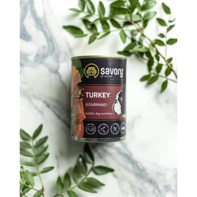 indyk 55%, serca indyka 14%, mąka z grochu 2%, batat (słodki ziemniak) 2%, lignoceluloza (włókno roślinne) 0,7%, węglan wapnia 0,3%, suszony szpinak 0,2%, suszony rozmaryn 0,1%, inulina (prebiotyk) 0,1%.