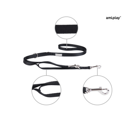 amiplay Samba Smycz regulowana 7in1 S 100 – 200 x 1,5 cm czarna dla psa