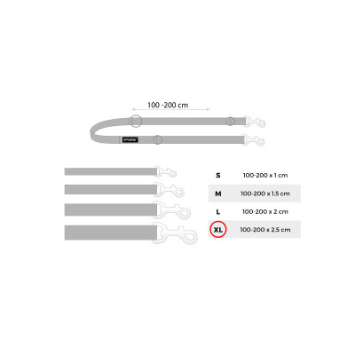 Smycz spacerowa dla psów ras dużych, ważących 26-40 kg. Przepinana na różne długości, wykonana z najwyższej jakości materiałów, trwała, idealna na miejskie spacery.