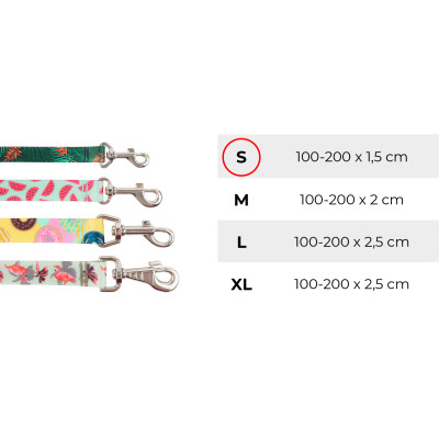 Smycz wykonana jest z wytrzymałej taśmy, odpornej na warunki atmosferyczne o niezwykle radosnej kolorystyce. Jest bardzo łatwa w czyszczeniu, wystarczy przetrzeć ją wilgotną szmatką lub wyprać, gdy zajdzie taka potrzeba i znów jest gotowa do użycia.