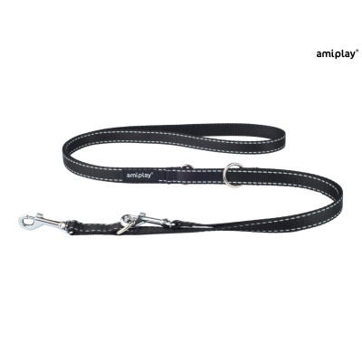 5907563215573 amiplay Reflective Smycz regulowana 6in1 L 100 – 200 x 2 cm czarna dla psa