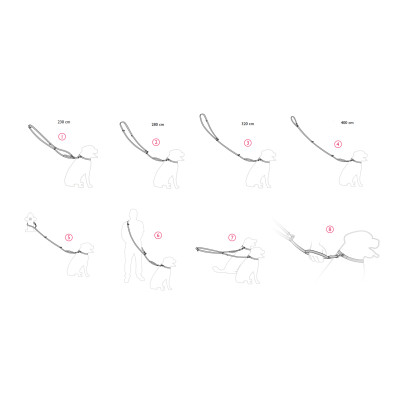 Smycz przepinana amiplay 8 w 1 pozwala na jej użycie na wiele różnych sposobów: