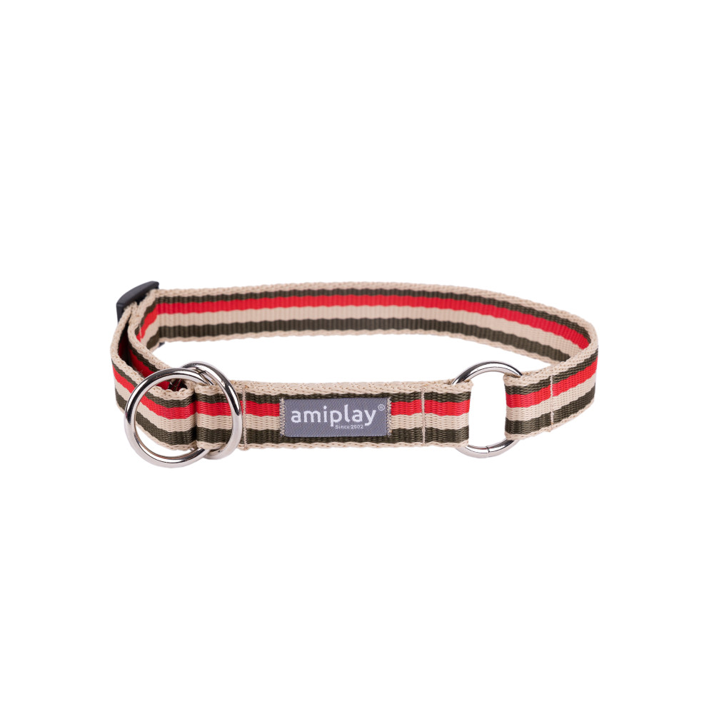 5907563314825 amiplay Popular Obroża półzaciskowa M 25-40 x 2cm Czerwono-oliwkowy dla psa