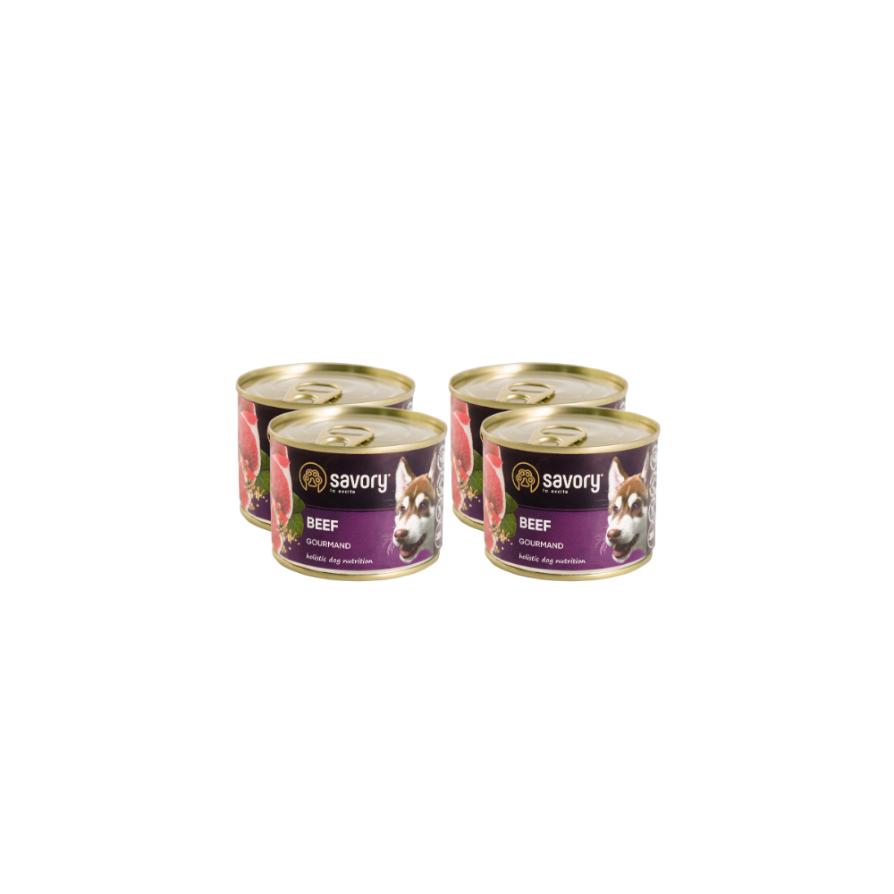 SAVORY KARMA MOKRA Z WOŁOWINĄ DLA WYBREDNYCH DOROSŁYCH PSÓW WSZYSTKICH RAS 4x200 G
