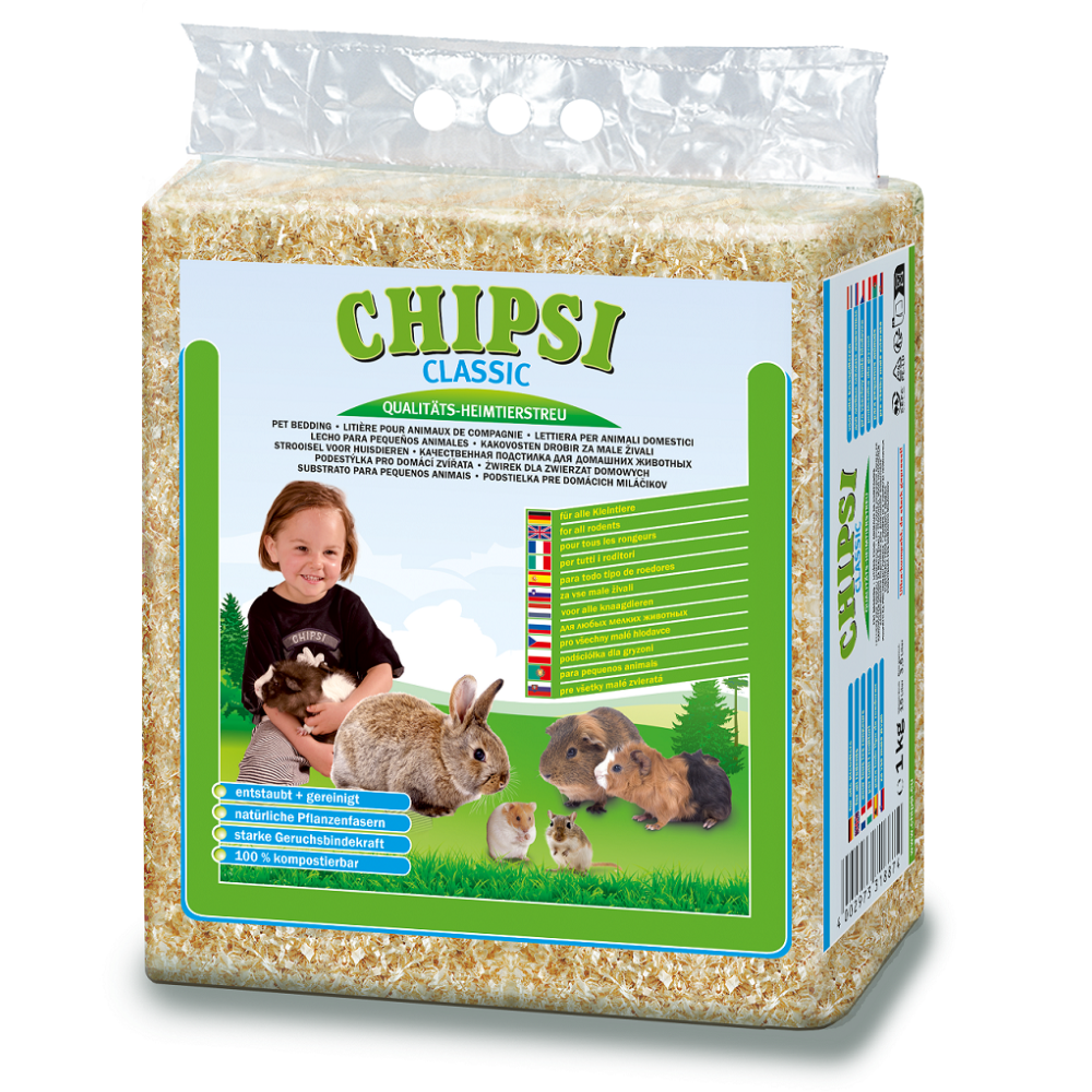 Chipsi Trociny Classic 1 kg to naturalna ściółka drewniana przeznaczona dla małych zwierząt, takich jak króliki, chomiki, świnki morskie, szczury i inne gryzonie. Jest to uniwersalna i podstawowa wersja trocin Chipsi, ceniona za swoją wysoką chłonność oraz naturalne właściwości.
